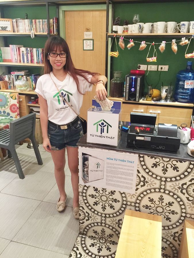 Chiếc hòm Từ Thiện Thật số 16  được đặt tại quán Things Coffee – 38 Trần Phú