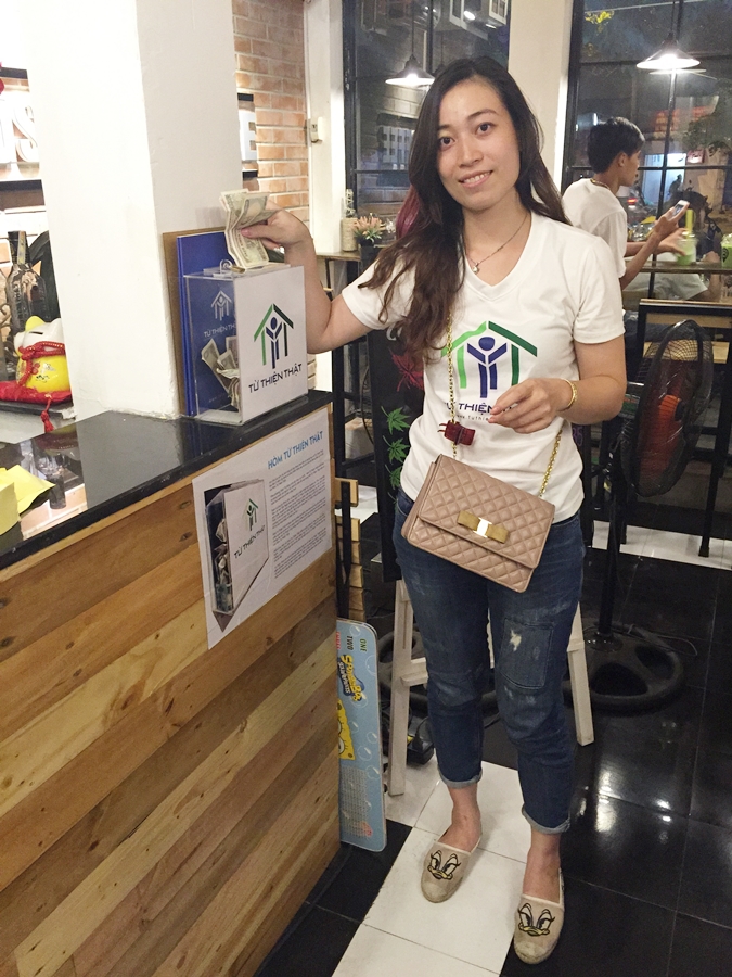 Chiếc hòm Từ Thiện Thật số 18  được đặt tại quán Busstop – 121B1  Thành Công